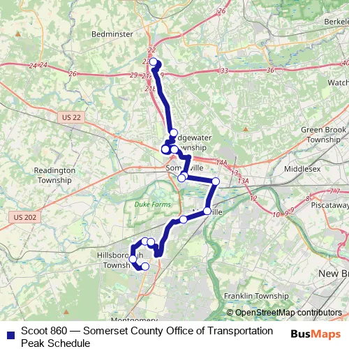 Bus Scoot 860 - Somerset County Office of Transportation Peak Schedule: Full Schedule in Somerville