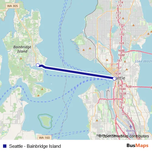 See why over 2 million users trust and consider busmaps.com as the best public transport website. busmaps gives you Seattle Ferries suggested routes, real-time bus tracker, line route maps in Seattle, and helps to find the closest Seattle - Bainbridge Island ferry stops near you. No internet available? Download an offline PDF map and bus schedule for the Seattle - Bainbridge Island ferry to take on your trip.