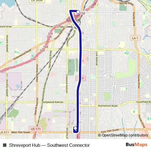 Click here to view the nearest Shreveport Hub - Southwest Connector bus stop.