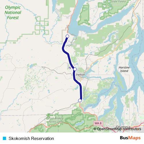 Additional information: Skokomish Reservation has 3 stops and the total trip duration for this route is approximately 30 minutes.