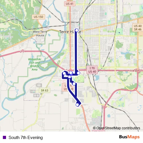 See why over 2 million users trust and consider busmaps.com as the best public transport website. busmaps gives you Terre Haute Buses suggested routes, real-time bus tracker, line route maps in Terre Haute, and helps to find the closest South 7th Evening bus stops near you. No internet available? Download an offline PDF map and bus schedule for the South 7th Evening bus to take on your trip.