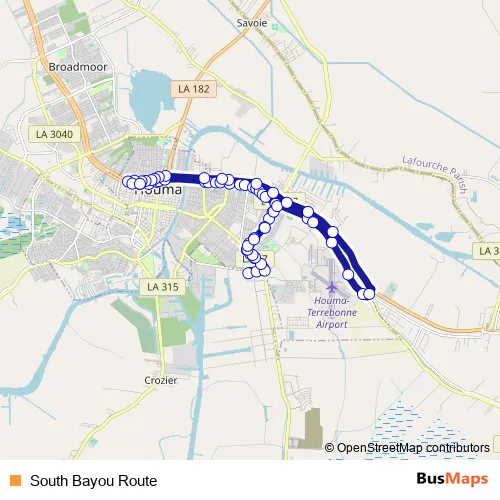 See why over 2 million users trust and consider busmaps.com as the best public transport website. busmaps gives you Houma Buses suggested routes, real-time bus tracker, line route maps in Houma, and helps to find the closest South Bayou Route bus stops near you. No internet available? Download an offline PDF map and bus schedule for the South Bayou Route bus to take on your trip.