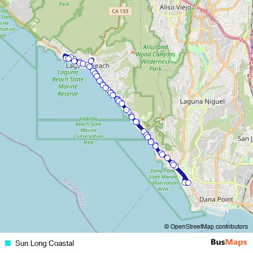 See why over 2 million users trust and consider busmaps.com as the best public transport website. busmaps gives you Laguna Beach Buses suggested routes, real-time bus tracker, line route maps in Laguna Beach, and helps to find the closest Sun Long Coastal bus stops near you. No internet available? Download an offline PDF map and bus schedule for the Sun Long Coastal bus to take on your trip.