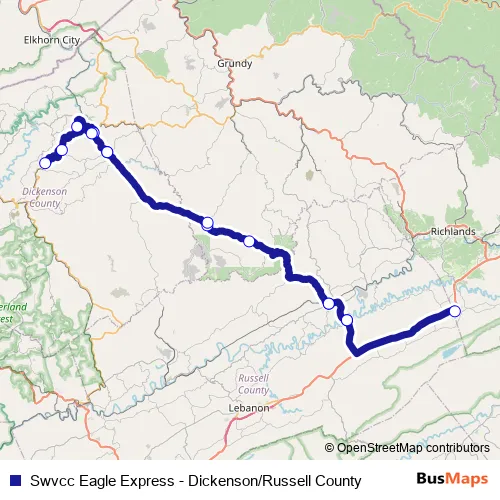 Bus Swvcc Eagle Express - Dickenson/Russell County in Clintwood: Stops & Timetable