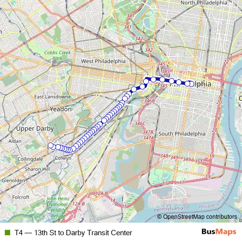 See why over 2 million users trust and consider busmaps.com as the best public transport website. busmaps gives you Philadelphia Trams suggested routes, real-time bus tracker, line route maps in Philadelphia, and helps to find the closest T4 tram stops near you. No internet available? Download an offline PDF map and bus schedule for the T4 tram to take on your trip.