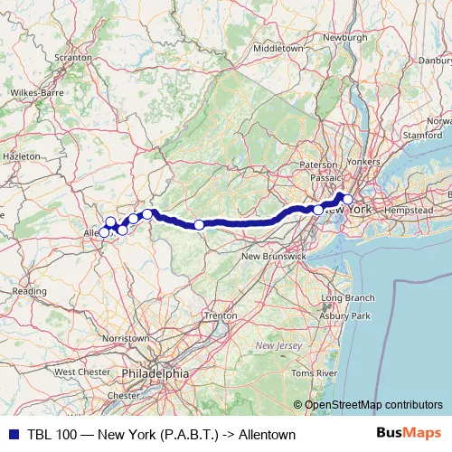 Click here to view the nearest TBL 100 - New York (P.A.B.T.) -> Allentown bus stop.