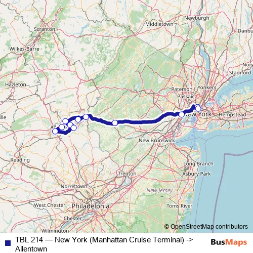Click here to view the nearest TBL 214 - New York (Manhattan Cruise Terminal) -> Allentown bus stop.