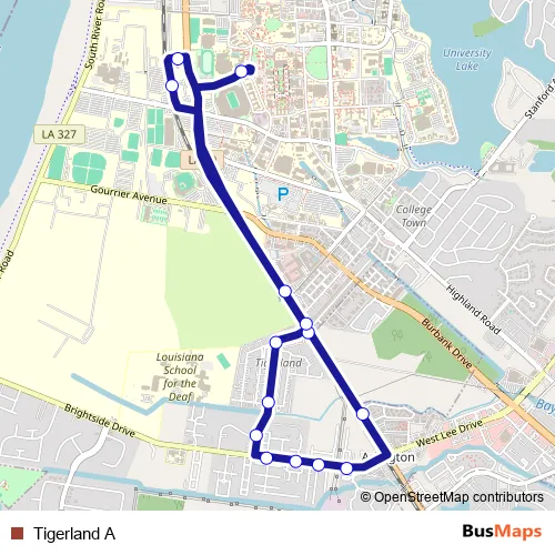 See why over 2 million users trust and consider busmaps.com as the best public transport website. busmaps gives you Baton Rouge Buses suggested routes, real-time bus tracker, line route maps in Baton Rouge, and helps to find the closest Tigerland A bus stops near you. No internet available? Download an offline PDF map and bus schedule for the Tigerland A bus to take on your trip.