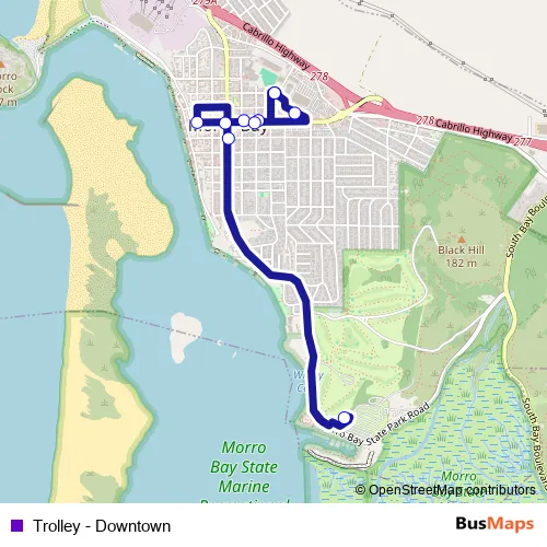 See why over 2 million users trust and consider busmaps.com as the best public transport website. busmaps gives you Morro Bay Buses suggested routes, real-time bus tracker, line route maps in Morro Bay, and helps to find the closest Trolley - Downtown bus stops near you. No internet available? Download an offline PDF map and bus schedule for the Trolley - Downtown bus to take on your trip.