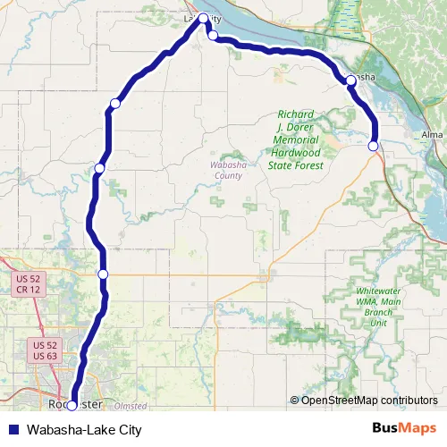 See why over 2 million users trust and consider busmaps.com as the best public transport website. busmaps gives you Rochester Buses suggested routes, real-time bus tracker, line route maps in Rochester, and helps to find the closest Wabasha-Lake City bus stops near you. No internet available? Download an offline PDF map and bus schedule for the Wabasha-Lake City bus to take on your trip.