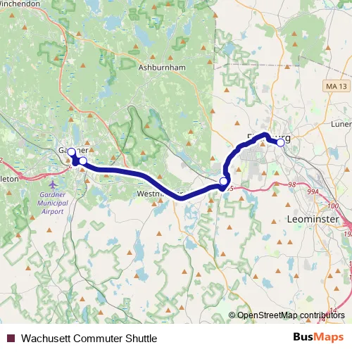 See why over 2 million users trust and consider busmaps.com as the best public transport website. busmaps gives you Gardner Buses suggested routes, real-time bus tracker, line route maps in Gardner, and helps to find the closest Wachusett Commuter Shuttle bus stops near you. No internet available? Download an offline PDF map and bus schedule for the Wachusett Commuter Shuttle bus to take on your trip.
