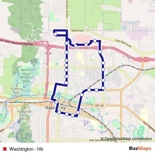 See why over 2 million users trust and consider busmaps.com as the best public transport website. busmaps gives you Rapid City Buses suggested routes, real-time bus tracker, line route maps in Rapid City, and helps to find the closest Washington - Nb bus stops near you. No internet available? Download an offline PDF map and bus schedule for the Washington - Nb bus to take on your trip.