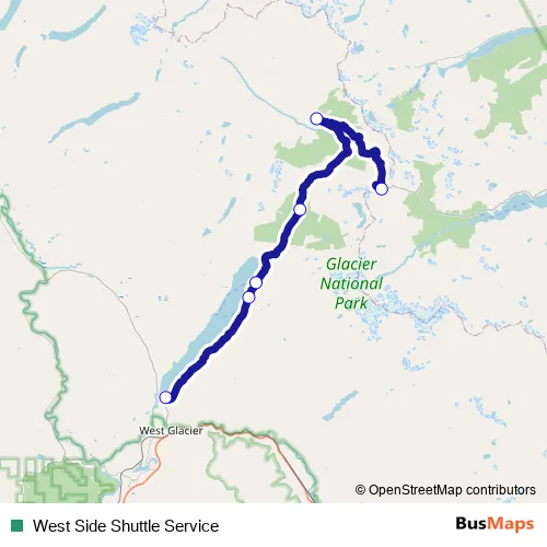 The first stop of the West Side Shuttle Service bus route is Logan Pass and the last stop is Apgar Visitor Center. West Side Shuttle Service (West Side Shuttle Service) is operational during todos los días.