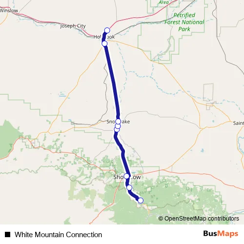 The first stop of the White Mountain Connection bus route is Safeway and the last stop is NPC Holbrook Painted Desert Campus. White Mountain Connection (White Mountain Connection) is operational during entre semana.