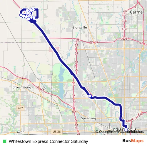 Additional information: Whitestown Express Connector Saturday has 14 stops and the total trip duration for this route is approximately 97 minutes.