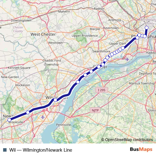 The first stop of the Wil rail route is Wilmington and the last stop is Suburban Station. Wil (Wilmington/Newark Line) is operational during todos los días.