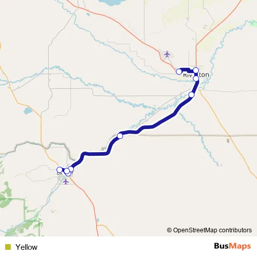 The first stop of the Yellow bus route is Riverton - Cwc and the last stop is Lander - Safeway. Yellow is operational during todos los días.
