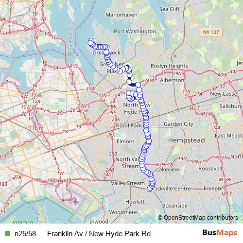 Bus n25/58 - Franklin Av / New Hyde Park Rd: Full Schedule in Mineola
