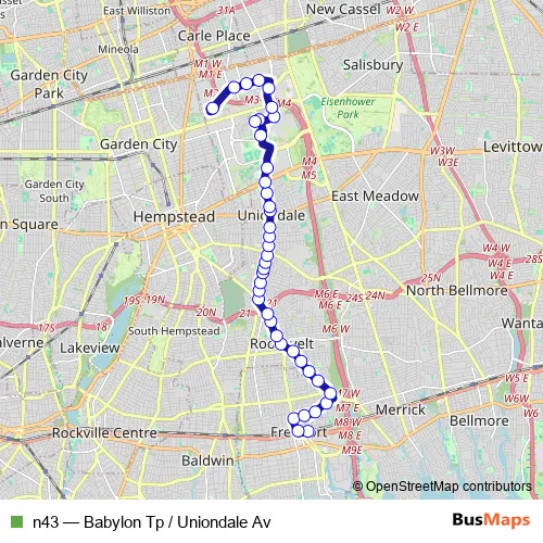 Bus n43 - Babylon Tp / Uniondale Av: Full Schedule in Mineola