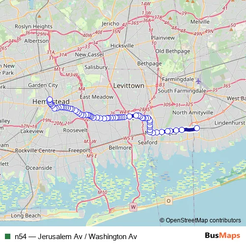 Click here to view the nearest n54 - Jerusalem Av / Washington Av bus stop.
