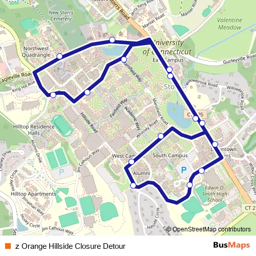 University of Connecticut (Uconn / Wrtd) z Orange Hillside Closure Detour bus Route Map