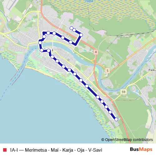 Bus 1A-I - Merimetsa - Mai - Karja - Oja - V-Savi: Full Schedule in Paernu