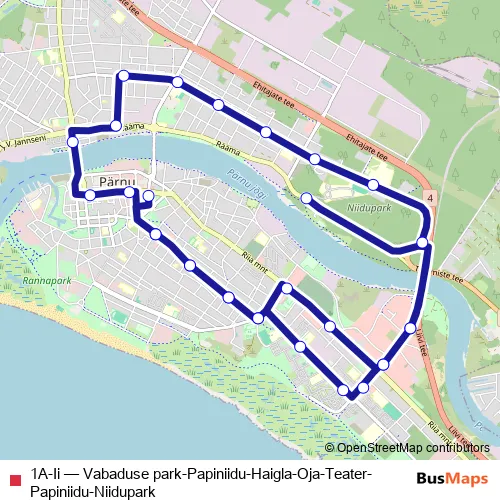 Bus 1A-Ii - Vabaduse park-Papiniidu-Haigla-Oja-Teater-Papiniidu-Niidupark Schedule in Paernu