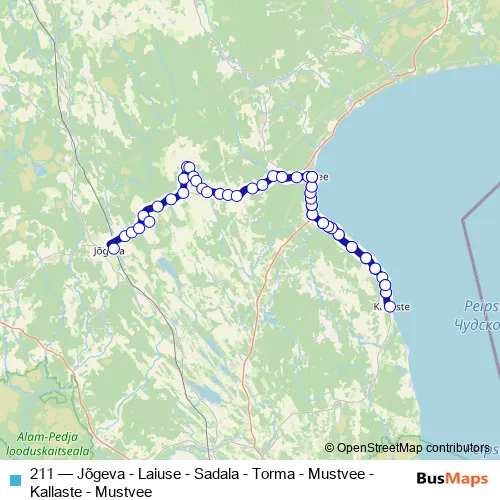 211 Bus - Jõgeva - Laiuse - Sadala - Torma - Mustvee - Kallaste - Mustvee