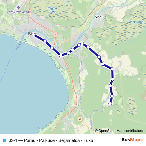 Bus 33-1 - Pärnu - Paikuse - Seljametsa - Tuka in Sindi: Stops & Timetable