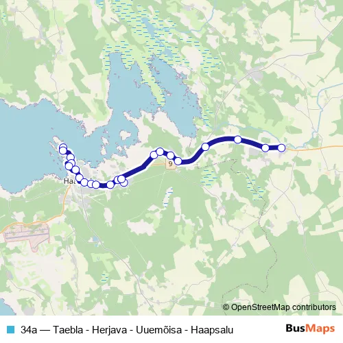The first stop of the 34a bus route is Holmi and the last stop is Taebla. 34a (Taebla - Herjava - Uuemõisa - Haapsalu) is operational during iga päev.