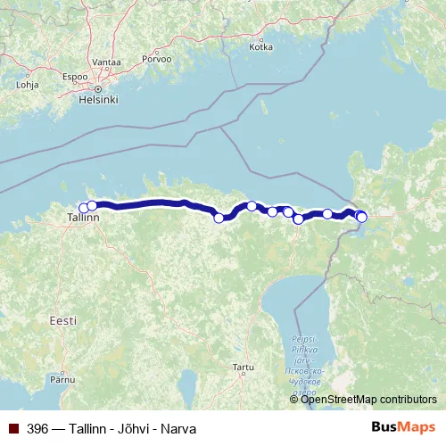 See why over 2 million users trust and consider busmaps.com as the best public transport website. busmaps gives you Narva Buses suggested routes, real-time bus tracker, line route maps in Narva, and helps to find the closest 396 bus stops near you. No internet available? Download an offline PDF map and bus schedule for the 396 bus to take on your trip.