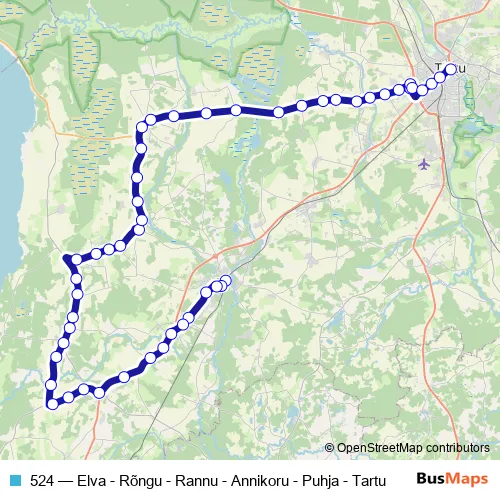 Bus 524 - Elva - Rõngu - Rannu - Annikoru - Puhja - Tartu: Full Schedule in Elva