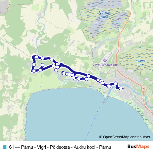 Click here to view the nearest 61 - Pärnu - Vigri - Põldeotsa - Audru kool - Pärnu bus stop.