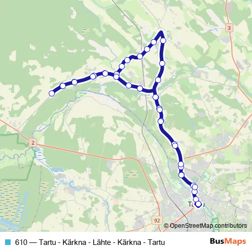 Bus 610 - Tartu - Kärkna - Lähte - Kärkna - Tartu in Tartu: Stops & Timetable