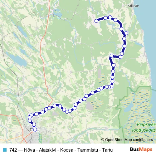 Bus 742 - Nõva - Alatskivi - Koosa - Tammistu - Tartu: Full Schedule in Alatskivi