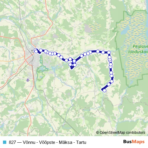 Bus 827 - Võnnu - Võõpste - Mäksa - Tartu in Luunja: Stops & Timetable
