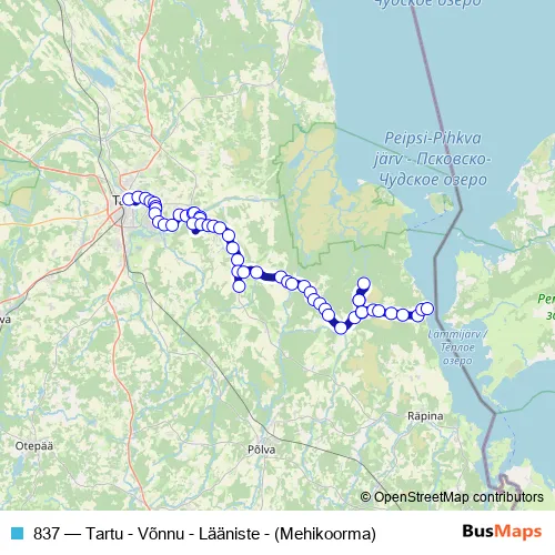 Bus 837 - Tartu - Võnnu - Lääniste - (Mehikoorma) in Luunja: Stops & Timetable