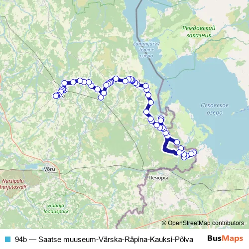 Click here to view the nearest 94b - Saatse muuseum-Värska-Räpina-Kauksi-Põlva bus stop.