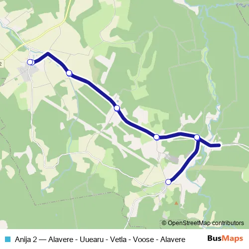 Click here to view the nearest Anija 2 - Alavere - Uuearu - Vetla - Voose - Alavere bus stop.