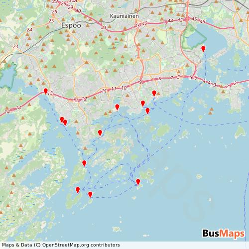 Espoon kaupunki, based in Helsinki, Uusimaa, Finland, offers a network of 6 public transport routes, including Ferry. Our platform provides detailed and up-to-date information on routes, schedules, stops, and arrivals for all services operated by Espoon kaupunki. Whether you're planning your daily commute or exploring the city, our tools help you find the nearest stop and the best route to your destination.