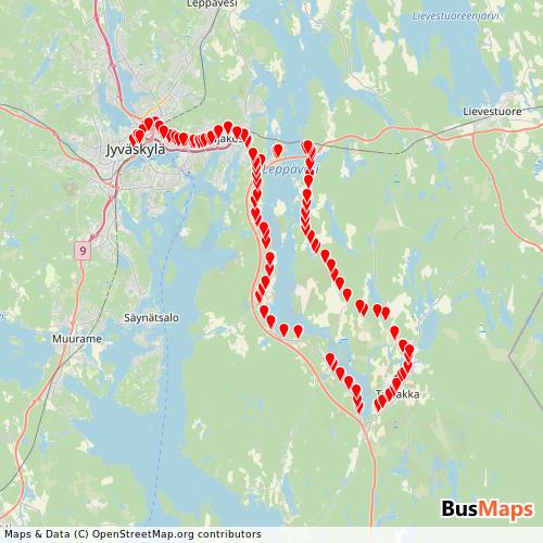 Kaikki tiedot ovat saatavilla GTFS-syötteessä: yvaskyla