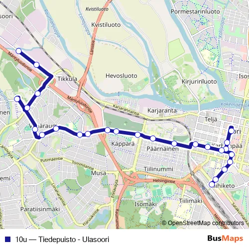 See why over 2 million users trust and consider busmaps.com as the best public transport website. busmaps gives you Pori Buses suggested routes, real-time bus tracker, line route maps in Pori, and helps to find the closest 10u bus stops near you. No internet available? Download an offline PDF map and bus schedule for the 10u bus to take on your trip.