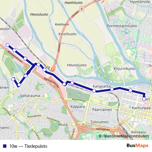 Bus 10w - Tiedepuisto in Pori: Stops & Timetable
