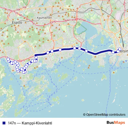 147n (Kamppi-Kivenlahti) Bus in Helsinki