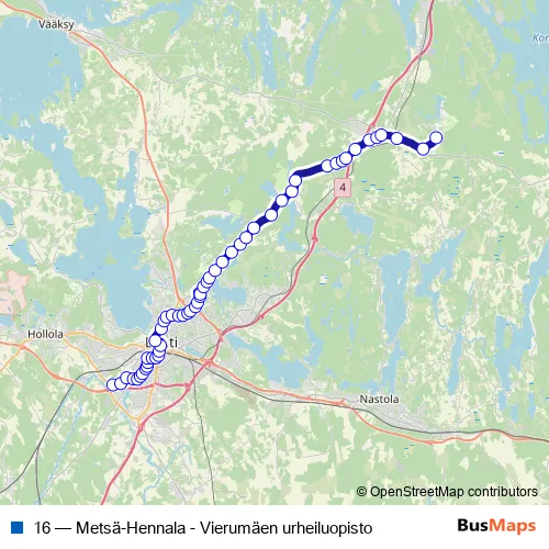 16 Bus - Metsä-Hennala - Vierumäen urheiluopisto