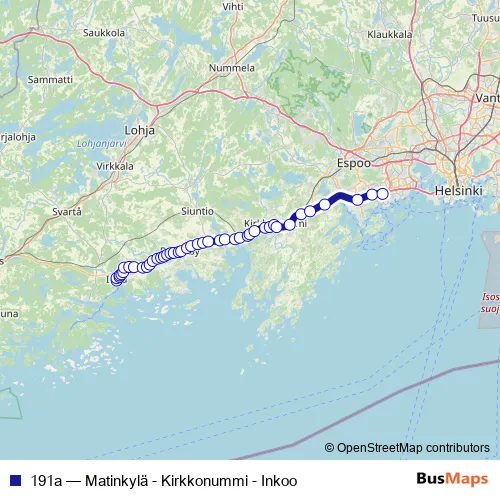 Click here to view the nearest 191a - Matinkylä - Kirkkonummi - Inkoo bus stop.