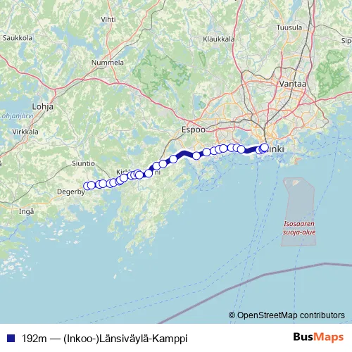 Click here to view the nearest 192m - (Inkoo-)Länsiväylä-Kamppi bus stop.