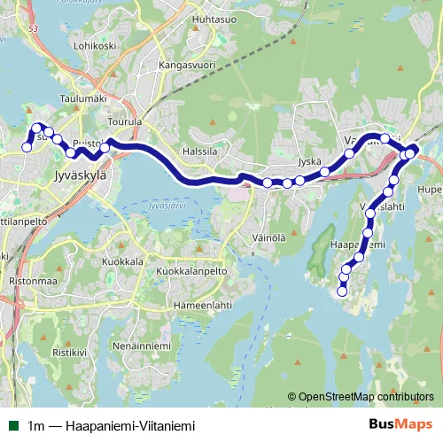 See why over 2 million users trust and consider busmaps.com as the best public transport website. busmaps gives you Jyvaeskylae Buses suggested routes, real-time bus tracker, line route maps in Jyvaeskylae, and helps to find the closest 1m bus stops near you. No internet available? Download an offline PDF map and bus schedule for the 1m bus to take on your trip.