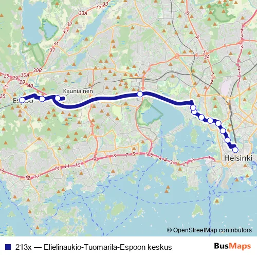 Bus 213x - Elielinaukio-Tuomarila-Espoon keskus: Full Schedule in Helsinki
