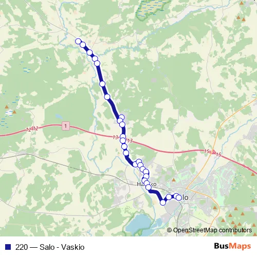 Bus 220 - Salo - Vaskio in Halikko: Stops & Timetable